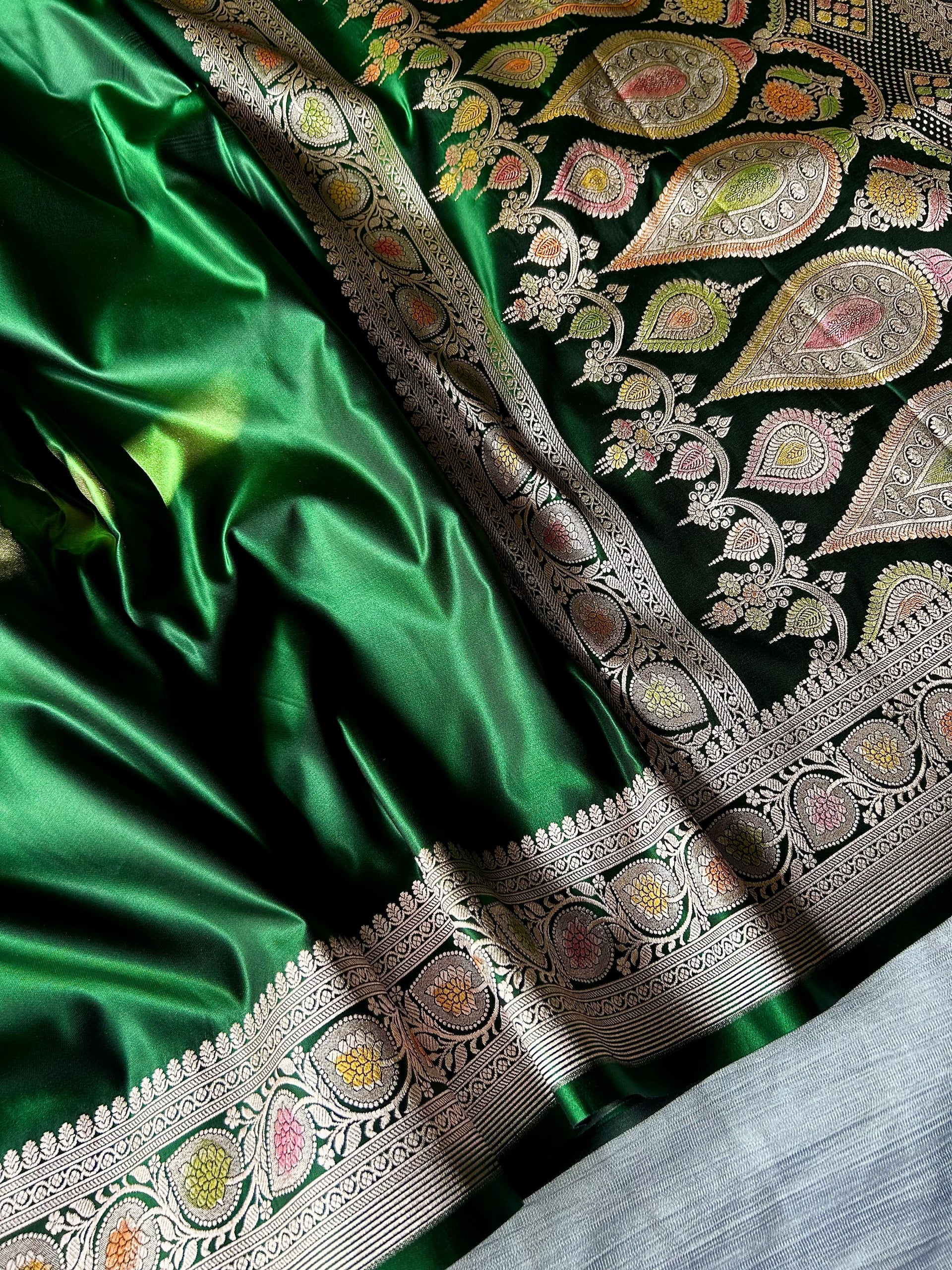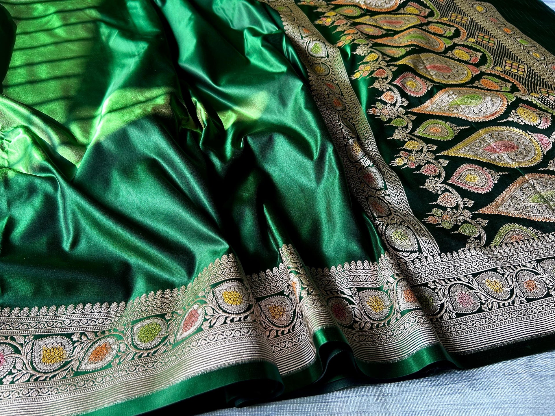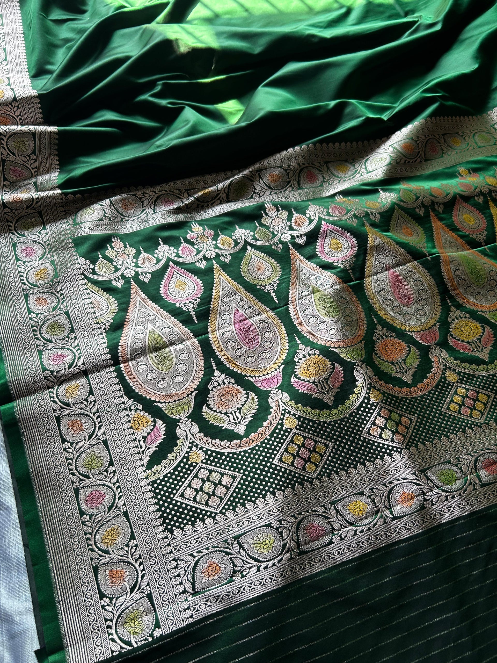 💠 Design: Intricate Multicolor Zari Weaving with Paisley & Floral Motifs