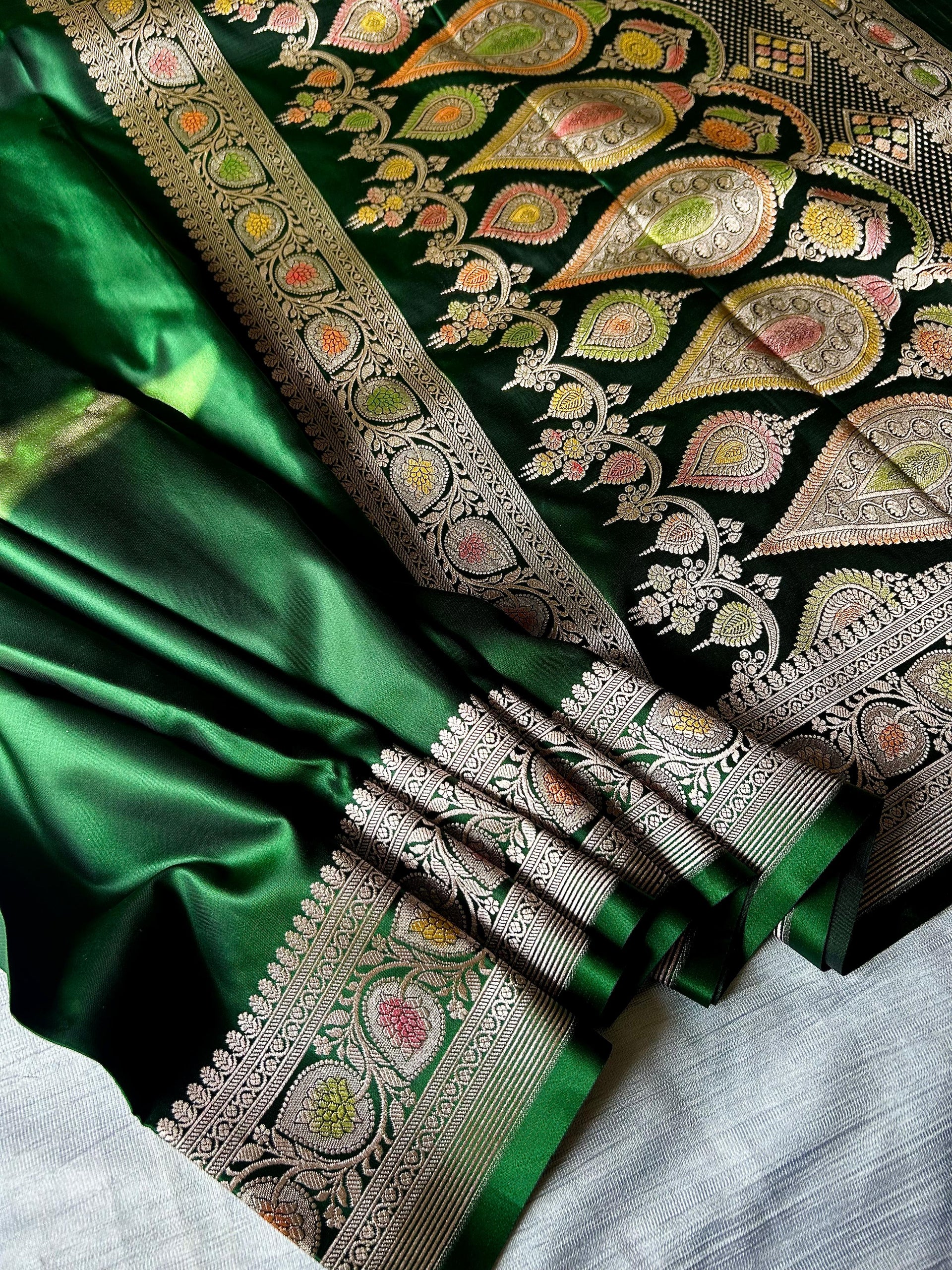 💠 Look: Rich Bottle Green Base with Traditional Accents – perfect for festive & wedding wear 🌿