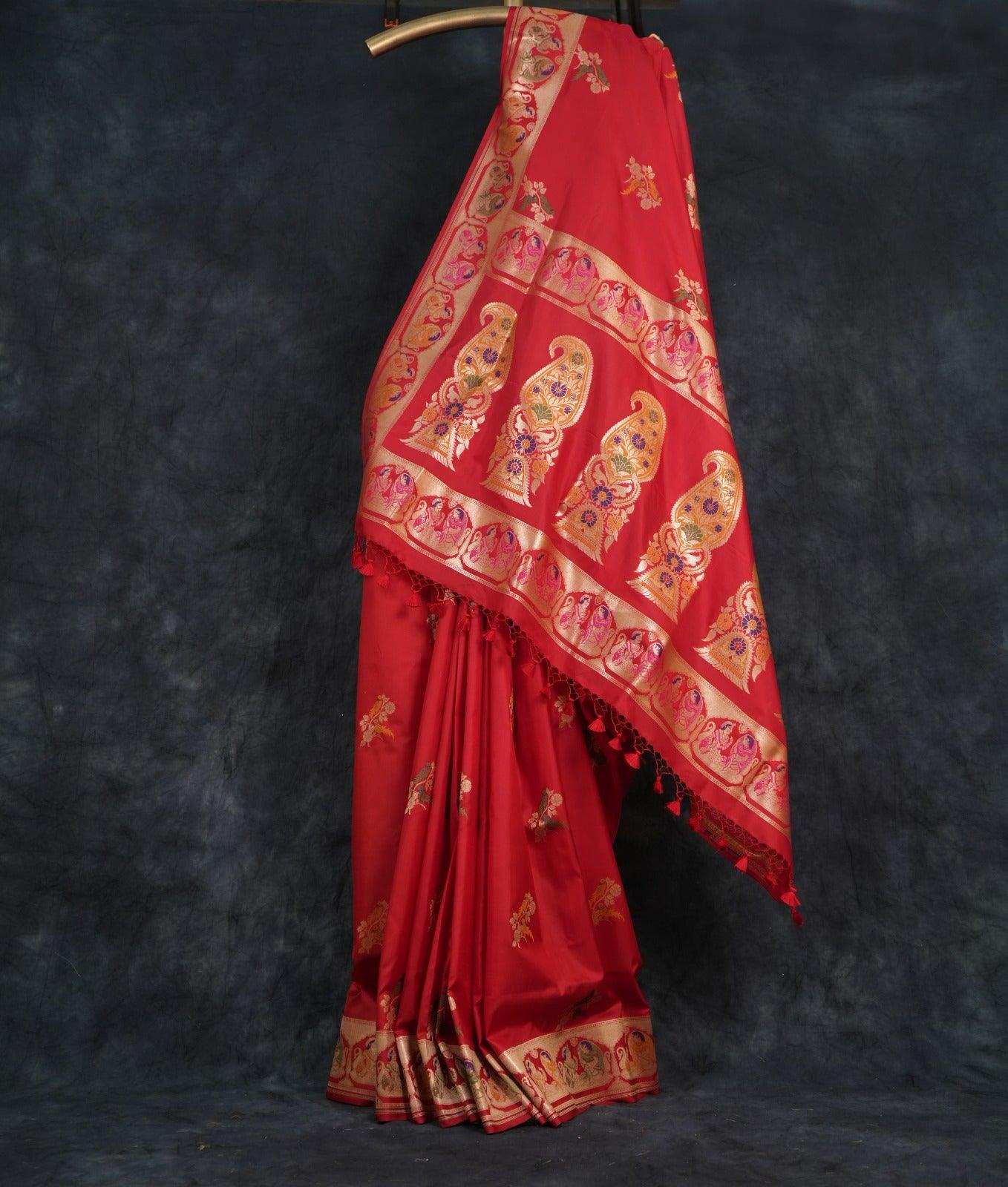 Raja Rani Pure Katan Red Handwoven Bridal Saree
