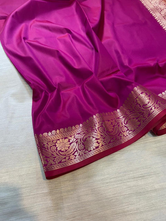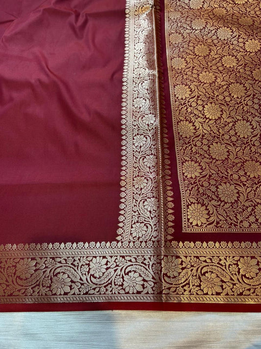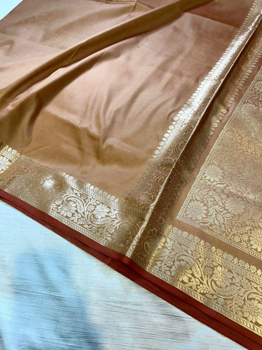 Pista Green Plain Semi Katan Silk Banarasi Saree with Brocade Blouse | Lightweight Golden Zari Saree