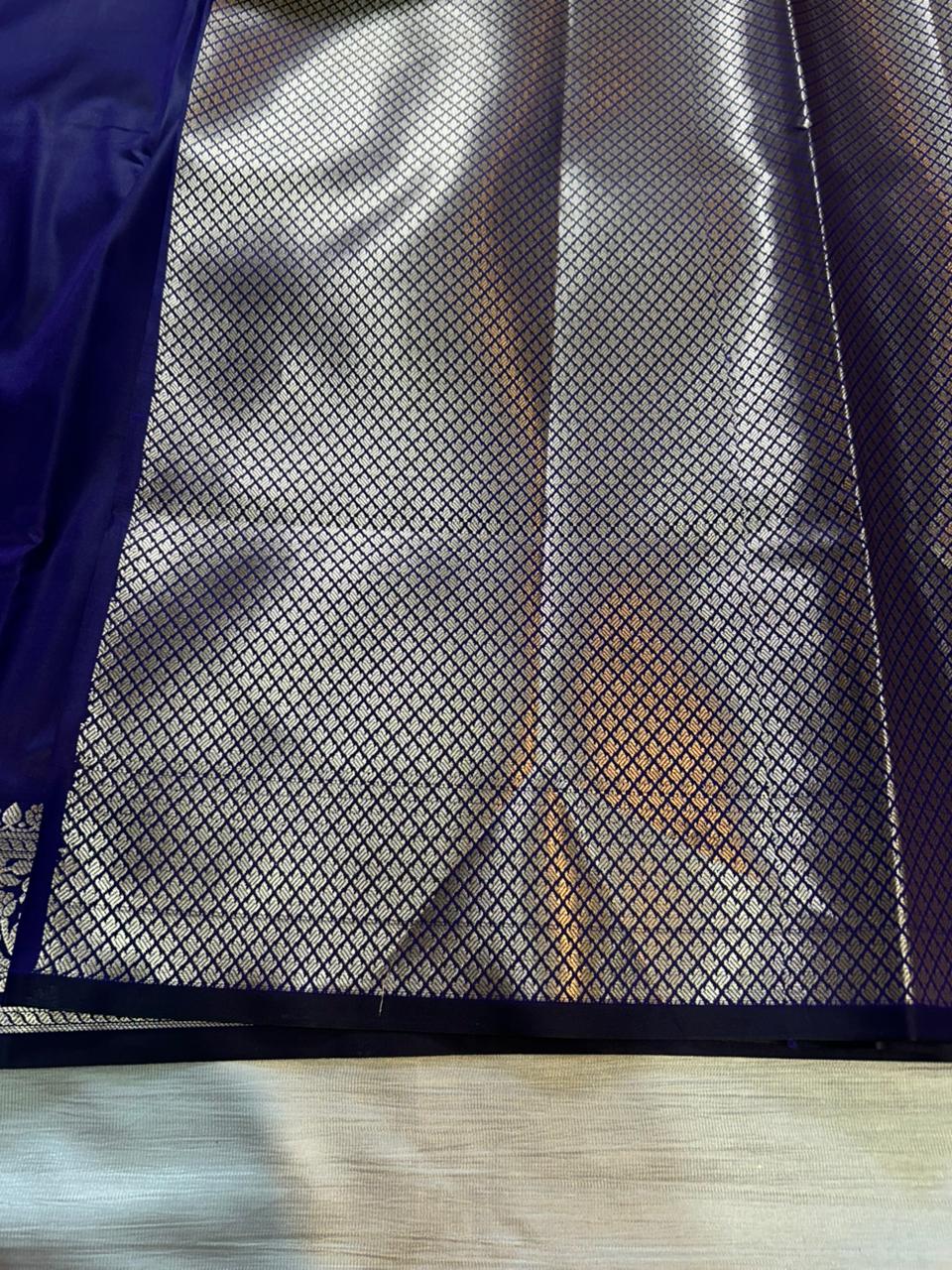 💙 Navy Blue Plain Semi Katan Silk Banarasi Saree
