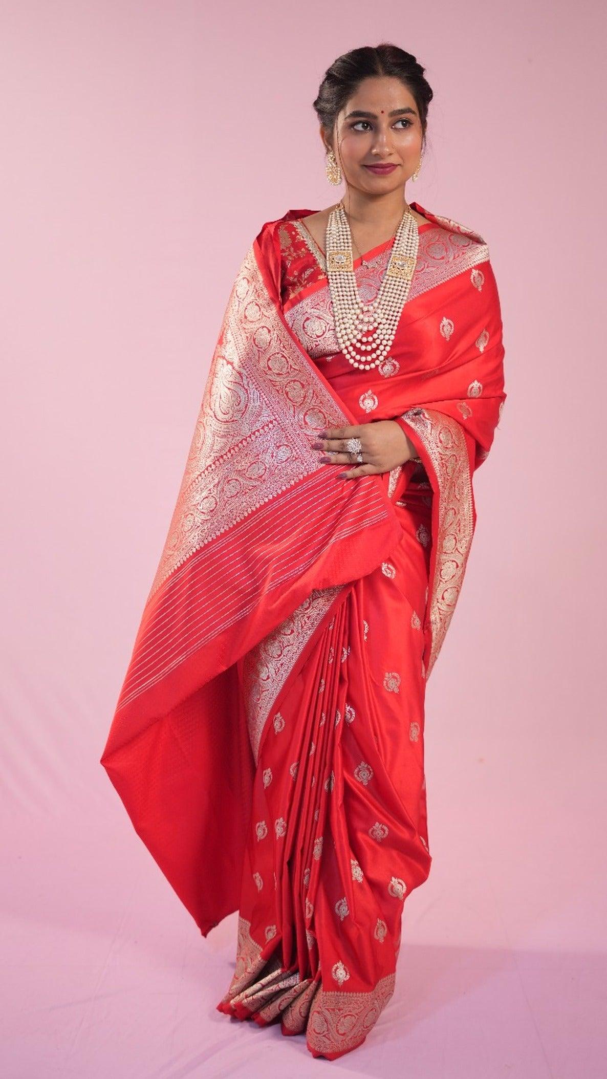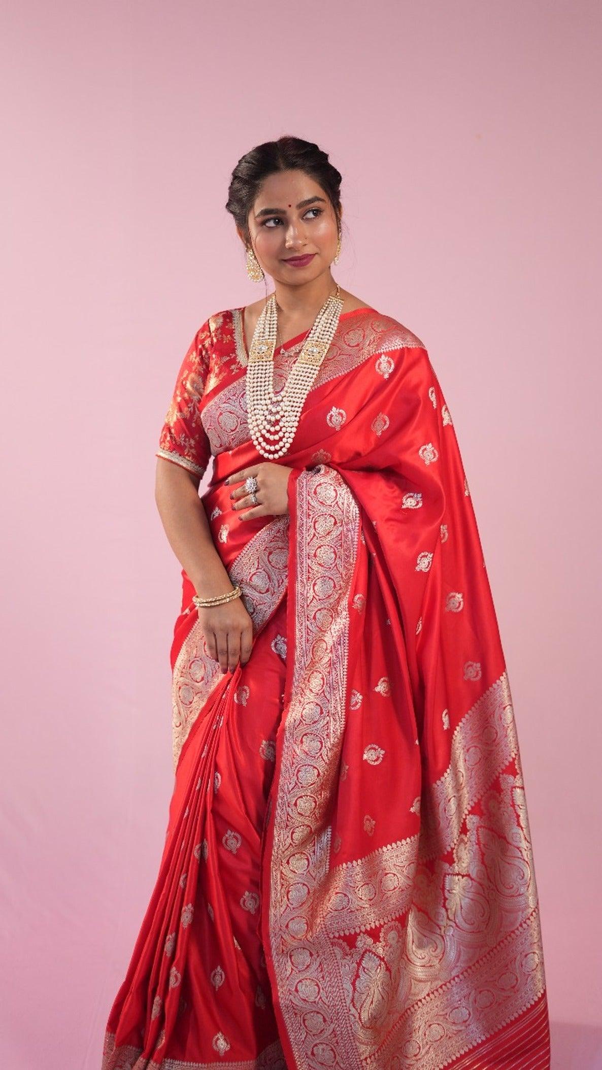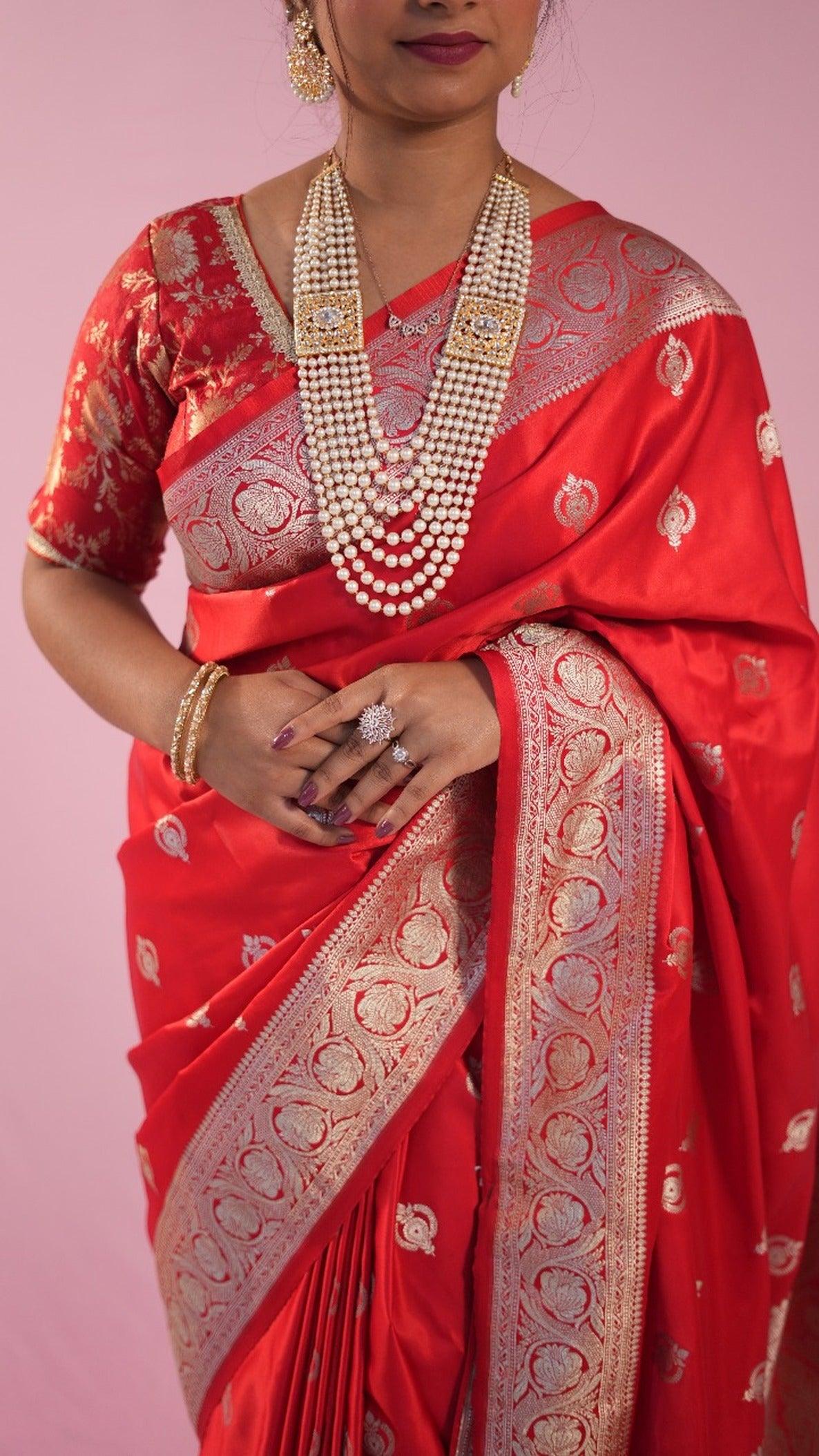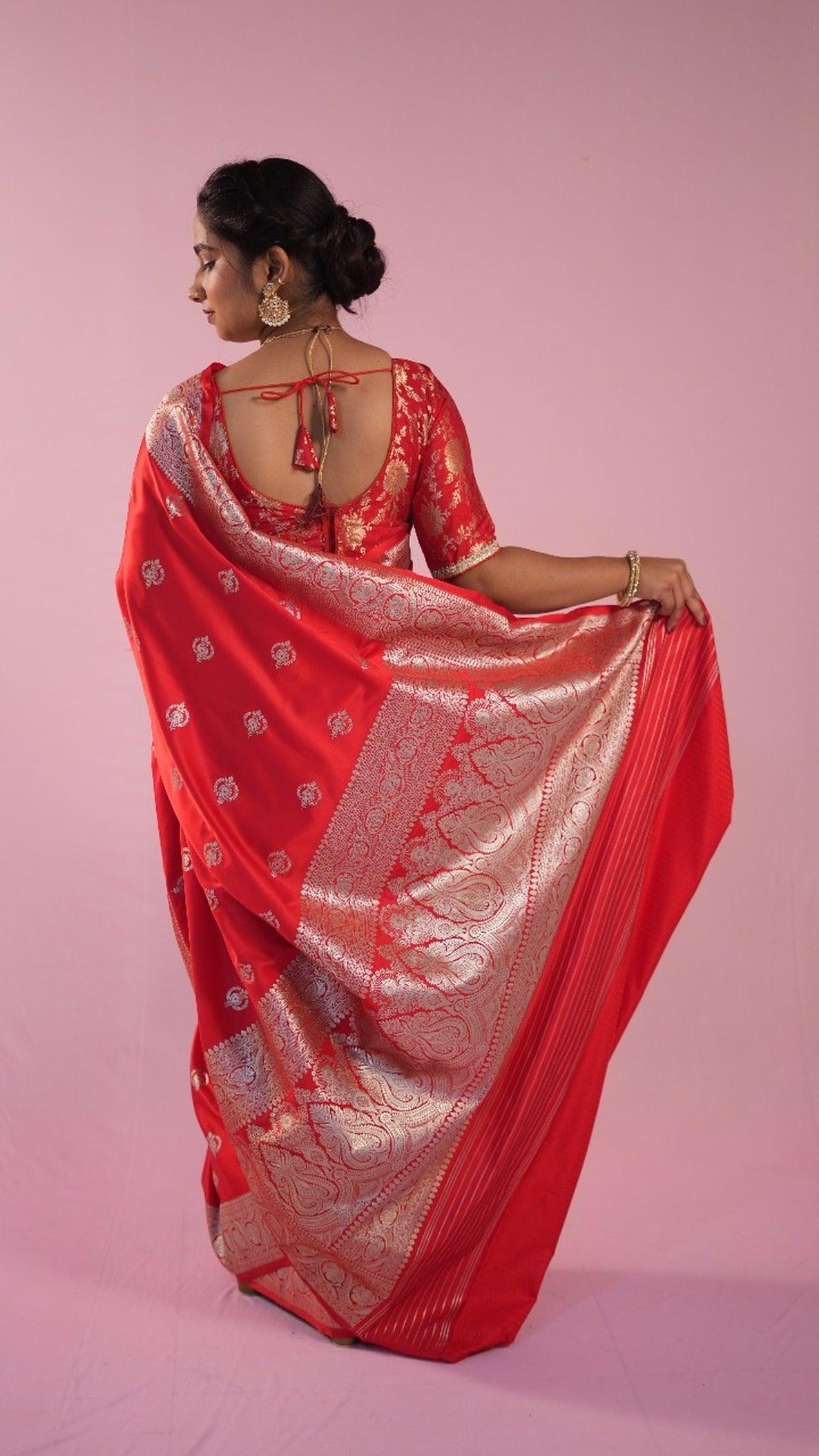 Banarasi Blood Red Saree Jhumka butti