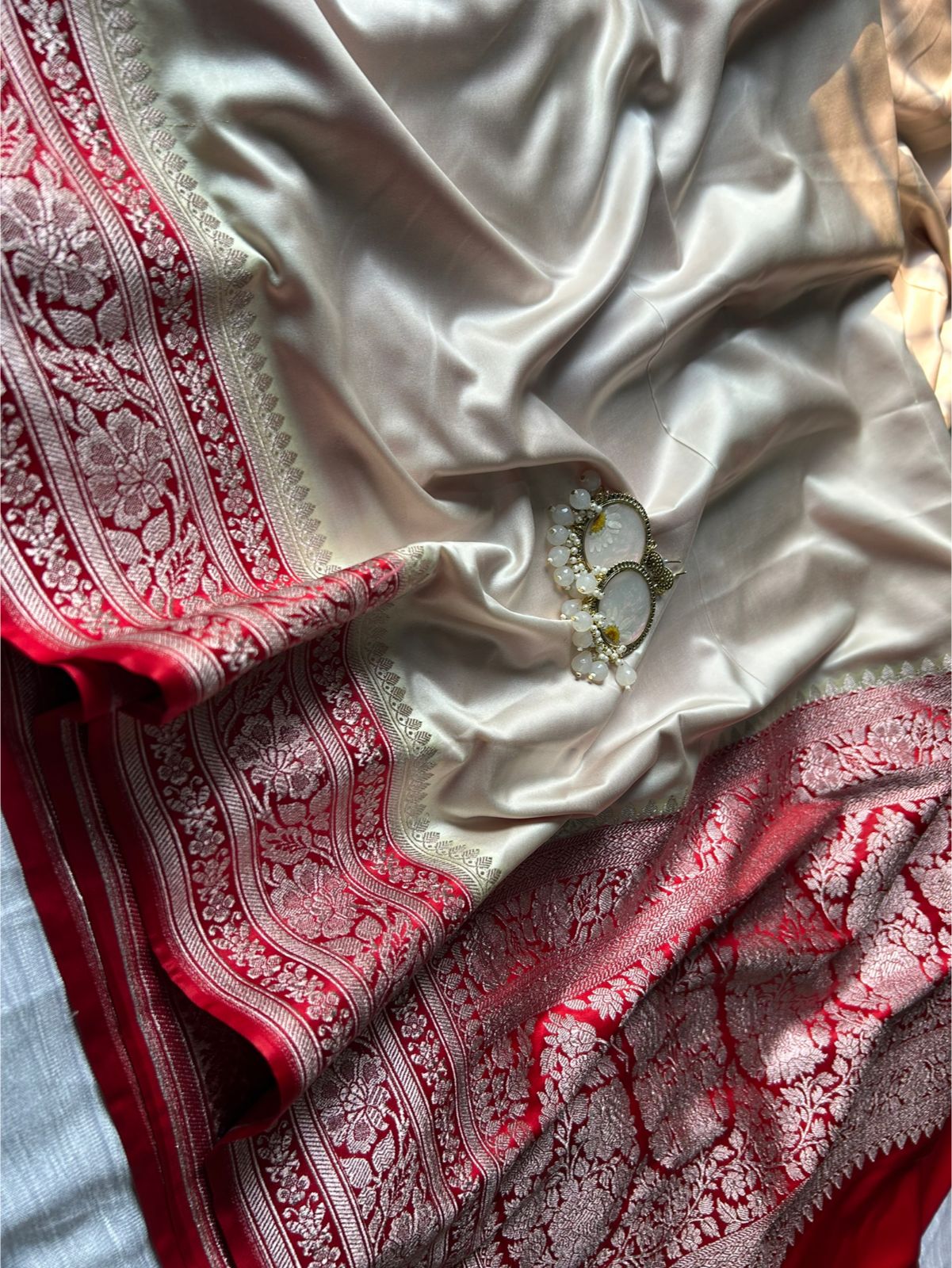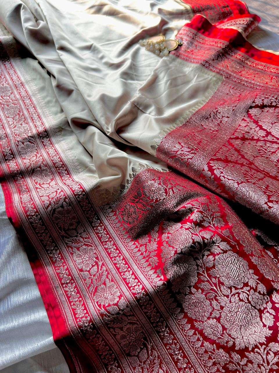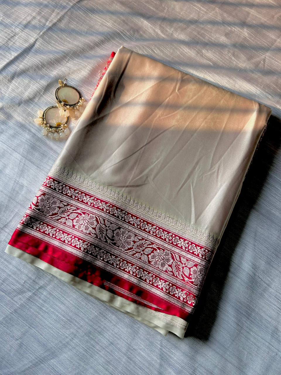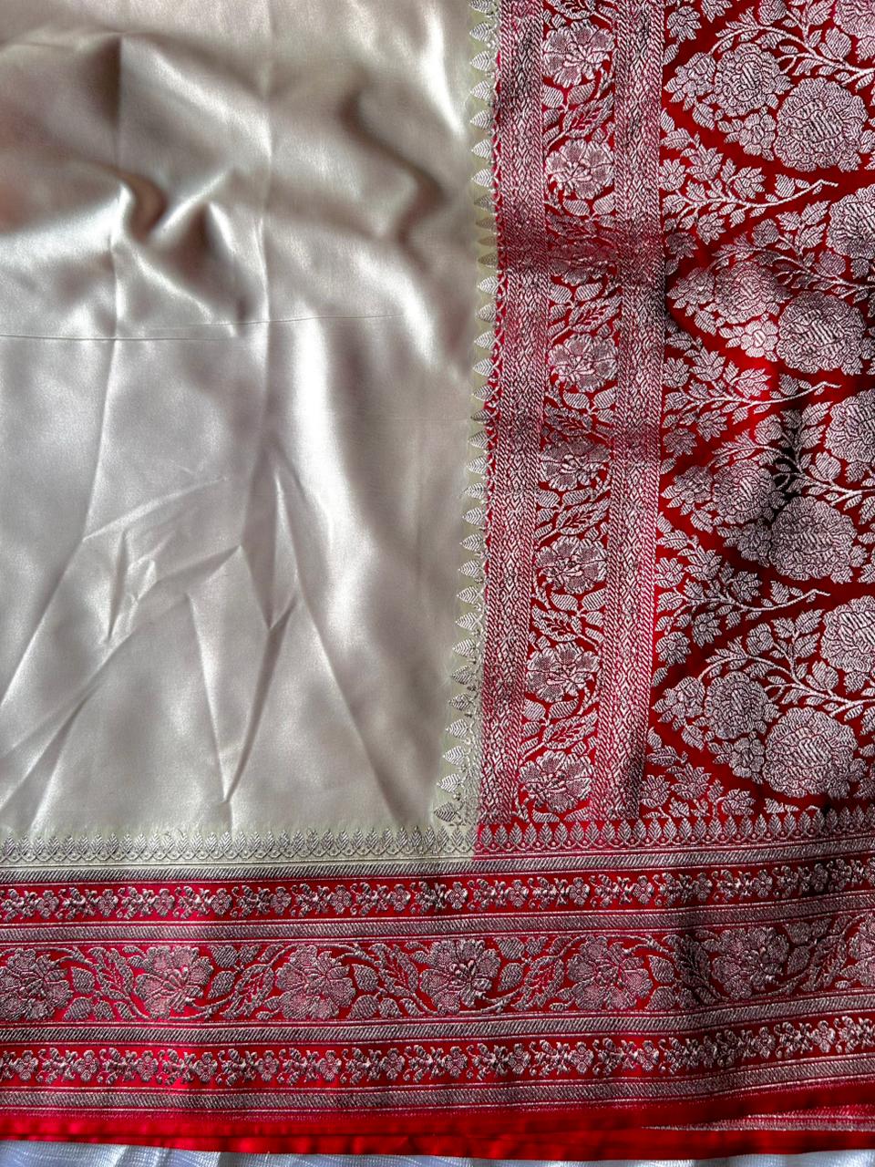 Off-White Red Border Saree | Elegant Mashru Silk Saree