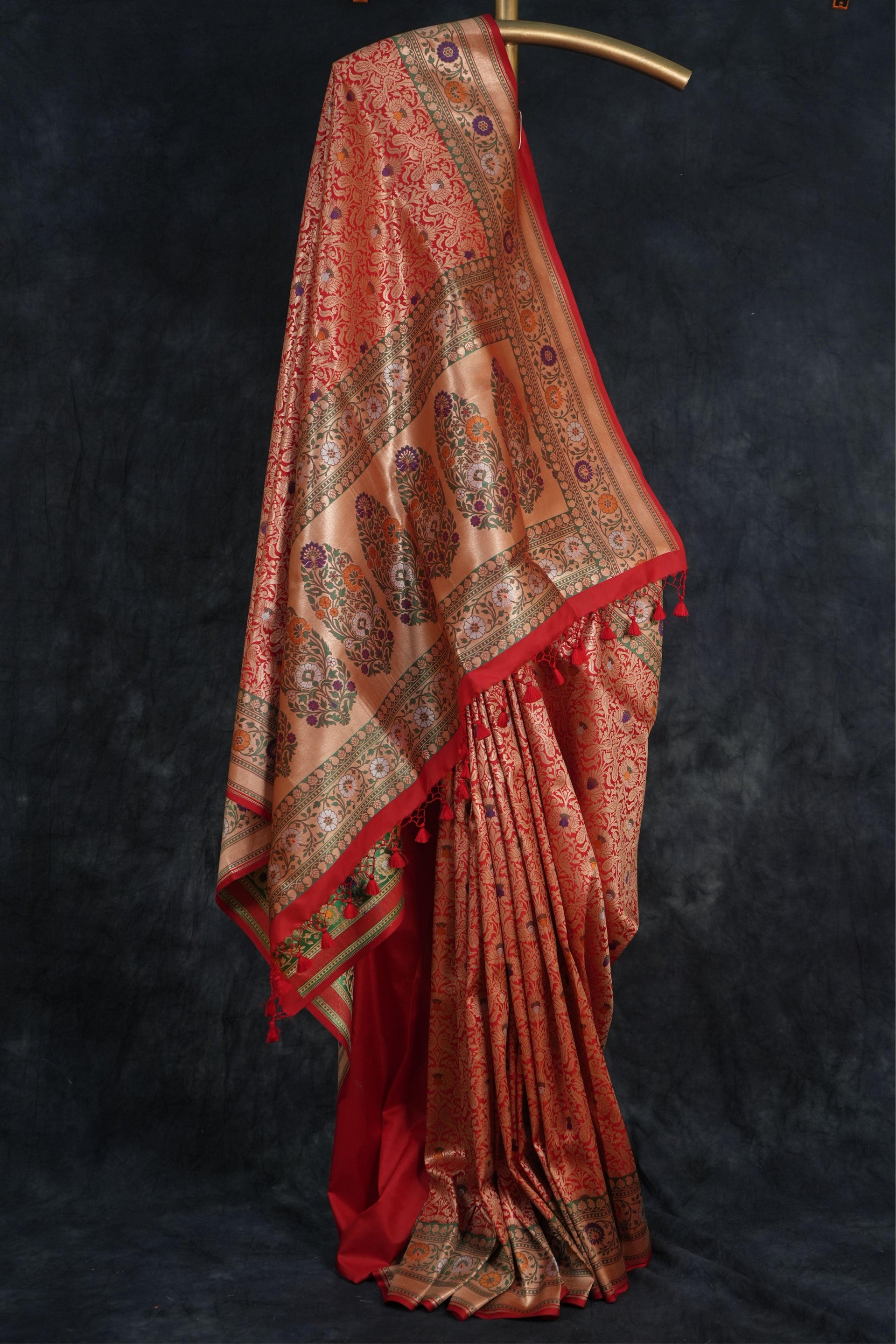 Product Name: Red Handloom Pure Katan Kimkhab Paithani Saree